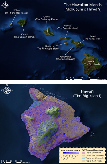 This site displays the outcome of the wet-areas mapping protocol when applied to the Hawaii Islands. Note that the interpretation of the blue-shaded wet areas will differ by terrestrial ecoregion: from mainly ephemeral to moist on the generally steep upland zones to mainly wet on the flat to undulating lowland zones. The wet-areas map can be much enhaced using high-resolution LiDAR-derived digital elevation data. We hope that the maps so generated will be of use to those who live on and care about these islands.