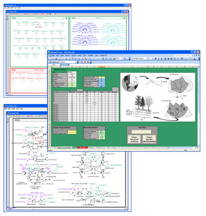 ForHyM is formulated in STELLA, a computer modeling software.  ForHyM receives its input (daily weather and soil / forest / watershed conditions) from a second interface (Excel) through dynamic linkage. This interface also contains Macros (i) to convert the continuous stream of daily weather into STELLA-ready format, (ii) to determine daily net radiation based on latitude, altitude, slope and aspect.