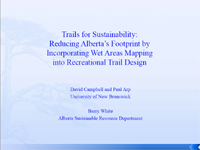 | Trails for Sustainability: Reducing Alberta’s Footprint by Incorporating Wet Areas Mapping into Recreational Trail Design David Campbell, Barry White, Paul Arp |
